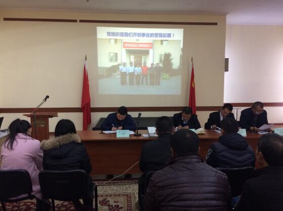 2017年11月20日在吉爾吉斯斯坦首都比什凱克,組織昌通海外黨小組成員、中層干部和入黨積極分子學(xué)習(xí)了“中國(guó)共產(chǎn)黨十九大報(bào)告”原文、學(xué)習(xí)“不忘初心 重溫焦裕祿精神”報(bào)道、重溫入黨誓詞等十九精神專題會(huì)議。
