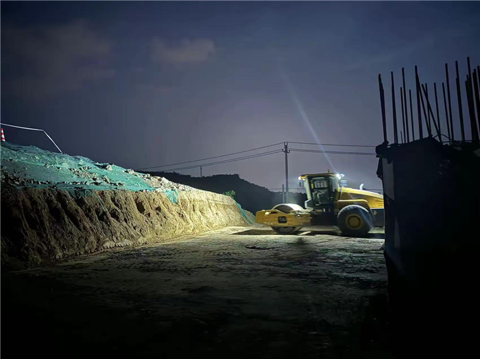 市區(qū)向6#臺(tái)背回填石方碾壓。