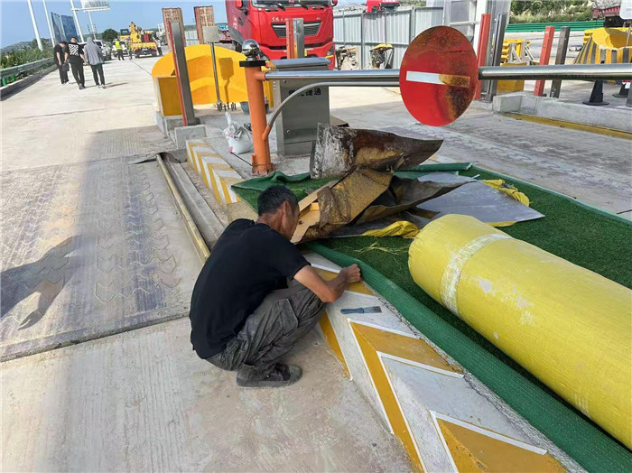 三門峽西收費(fèi)站拱形骨架勾縫