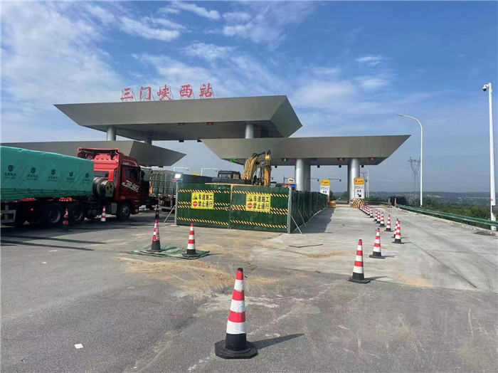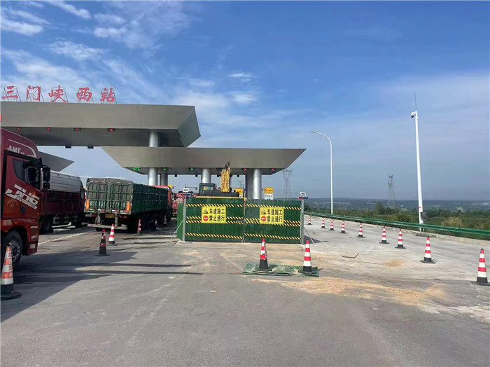 三門峽西收費(fèi)站3、4號(hào)車道圍擋扎設(shè)完成